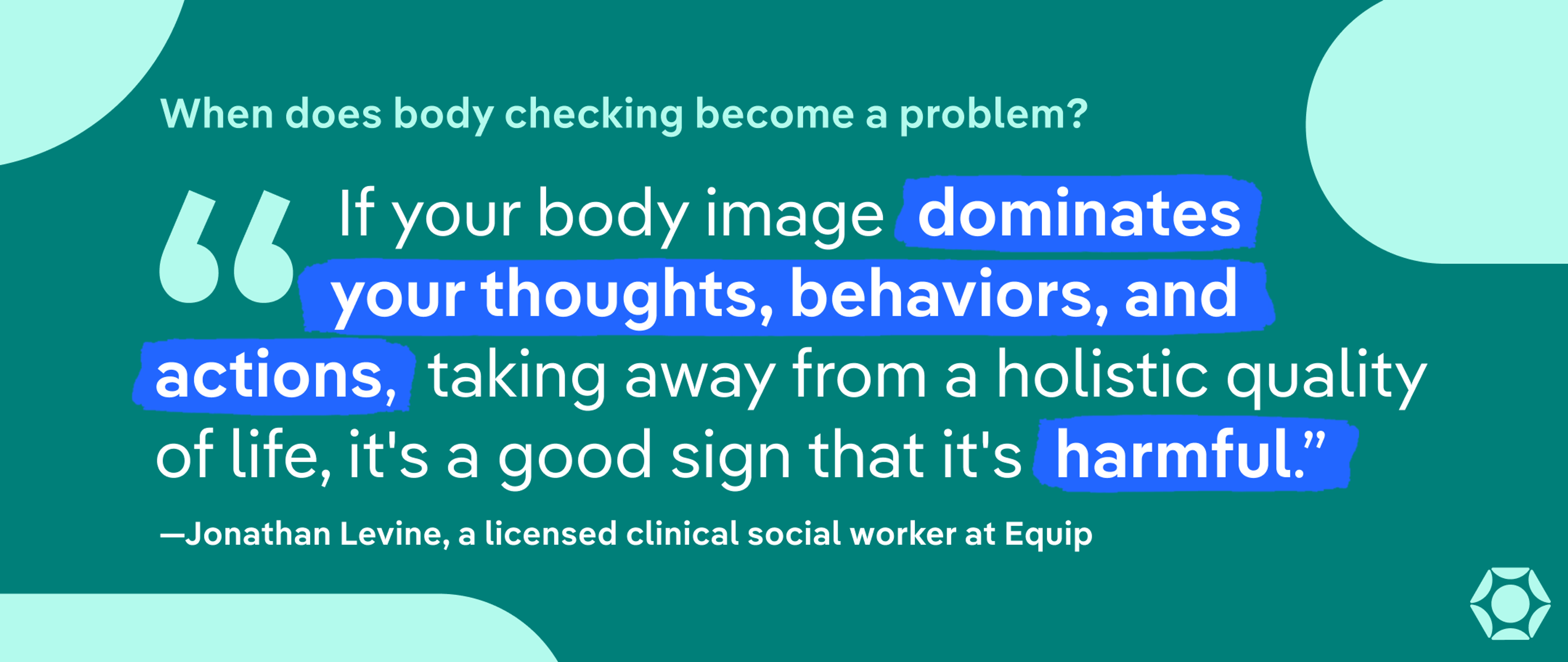If you or a loved one is looking for recovery options or help with body checking, know that care is available. Talk with a trusted doctor or schedule a call with Equip to talk through your concerns and explore treatment options.